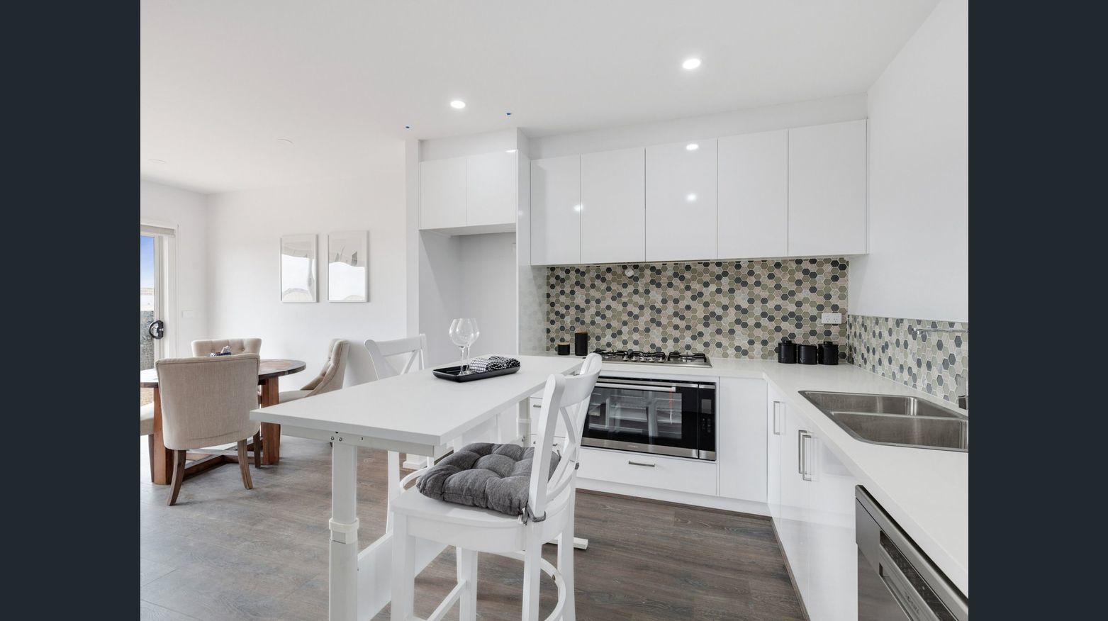 Universal Real Estate Vic proudly presents this modern house with three bedrooms, master with a private balcony, two and a half bathrooms, Formal lounge and Open Plan Family Living/Dining area., timber staircase, stone bench tops throughout, Low maintenance spacious backyard, split system heating and cooling and double lock up carport/garage accessed via the rear laneway.