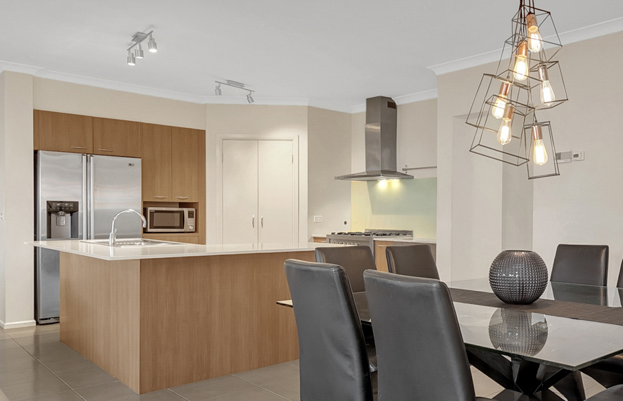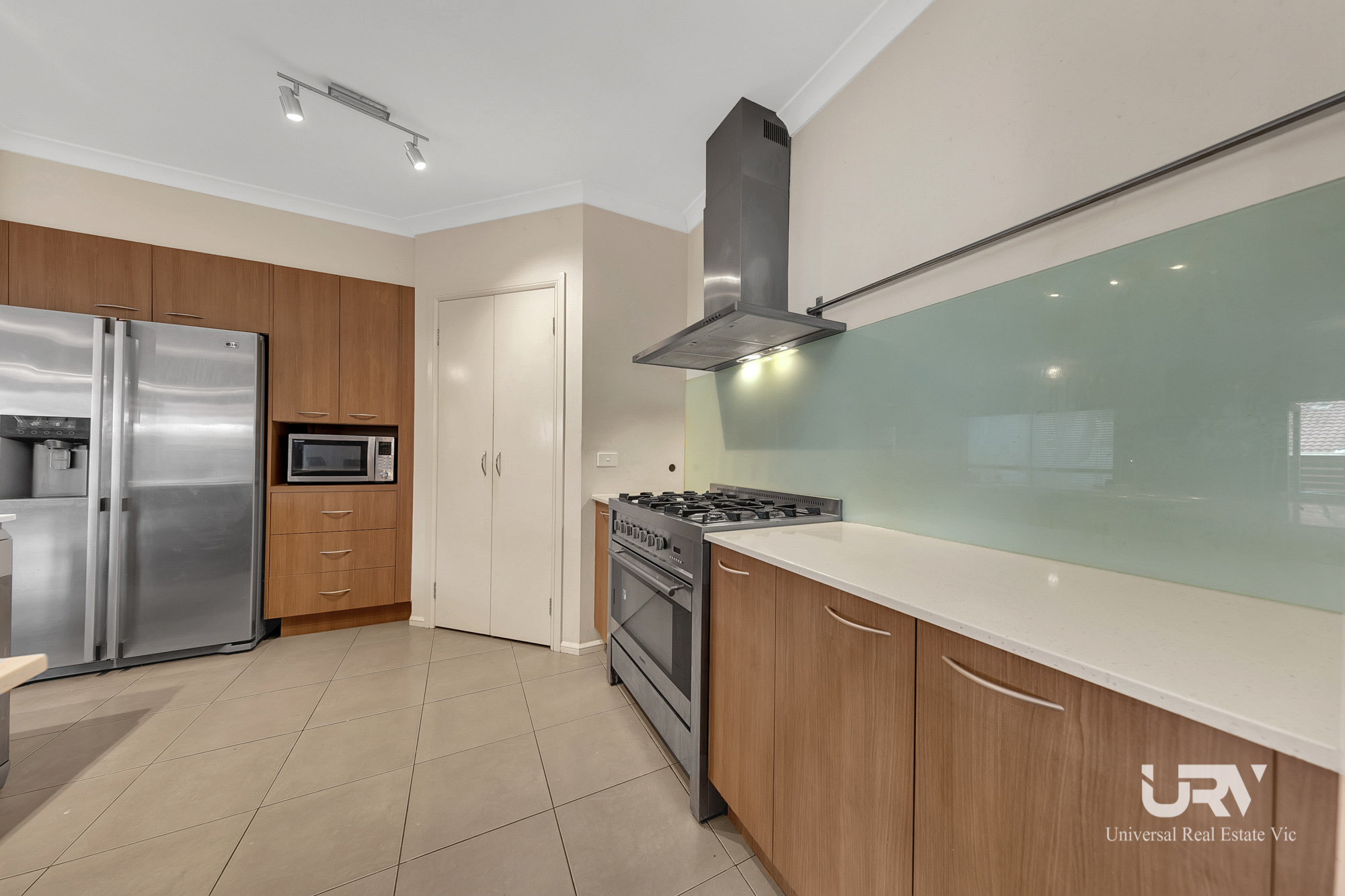 - KITCHEN: The kitchen embraces 900mm Blanco gas appliances, walk in pantry, glass tiled splashback, double door fridge space, stone benchtop, omega dishwasher and ample space in the form of cupboards.