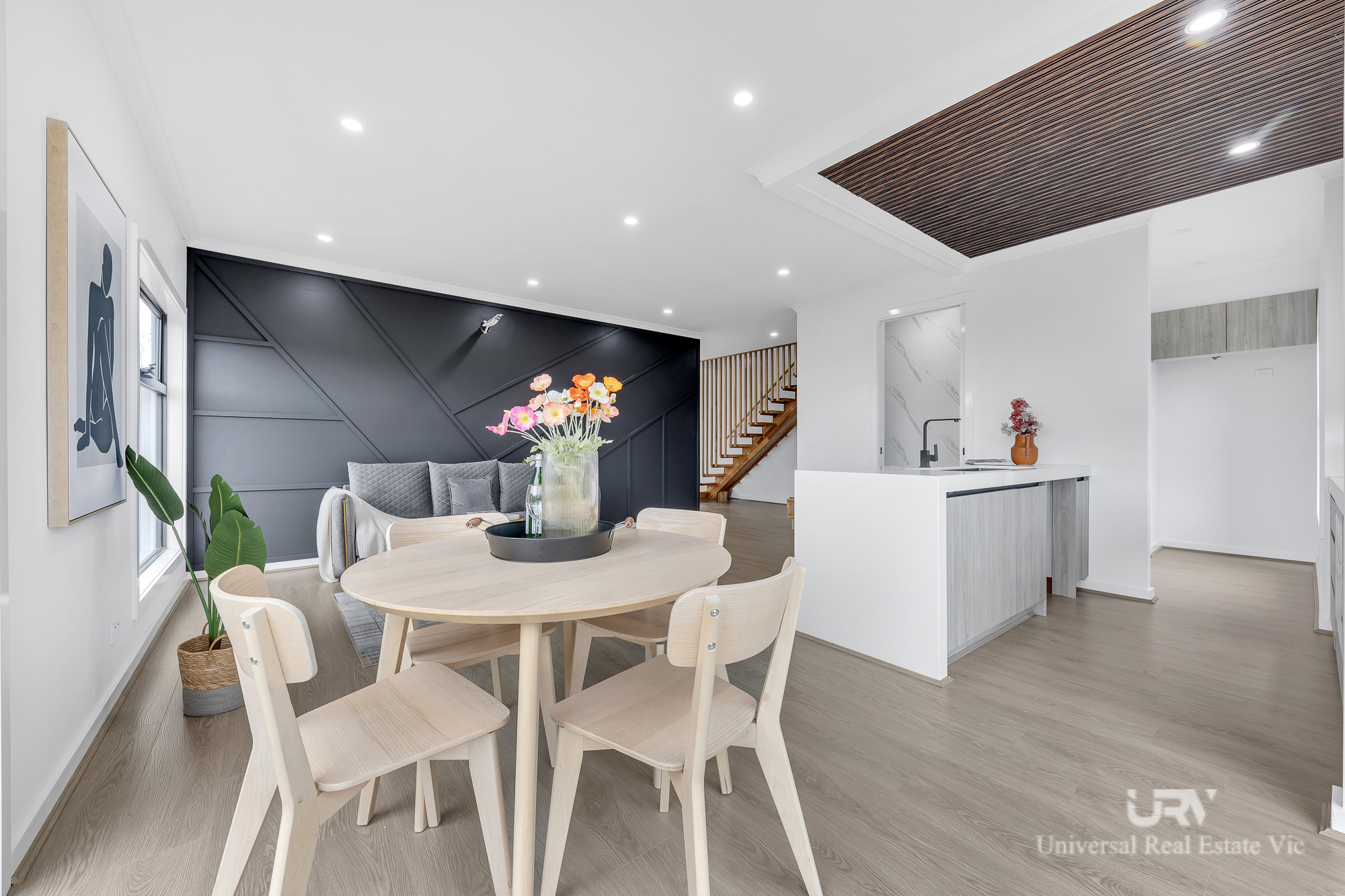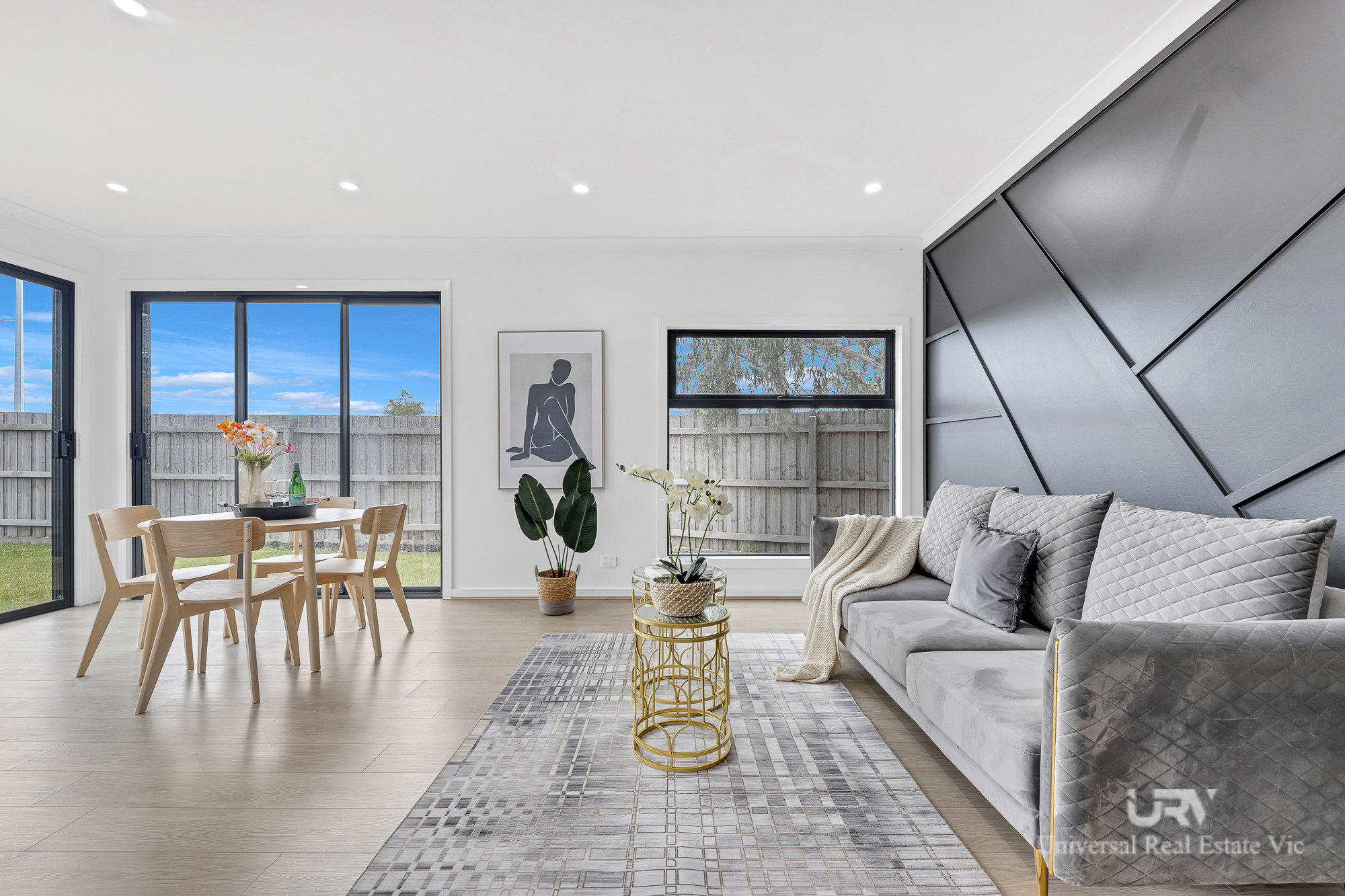• Open-plan living and dining with seamless timber-look flooring