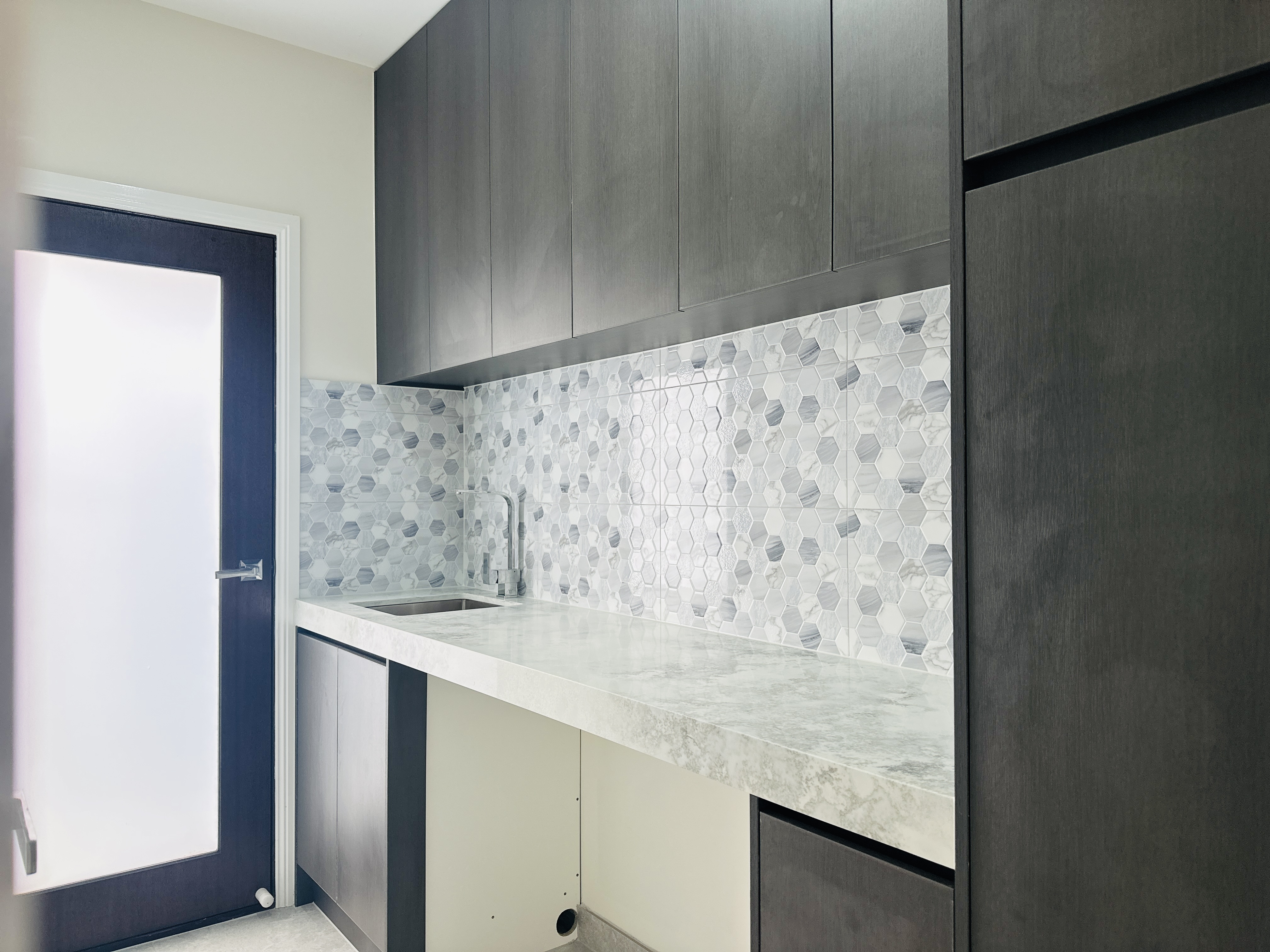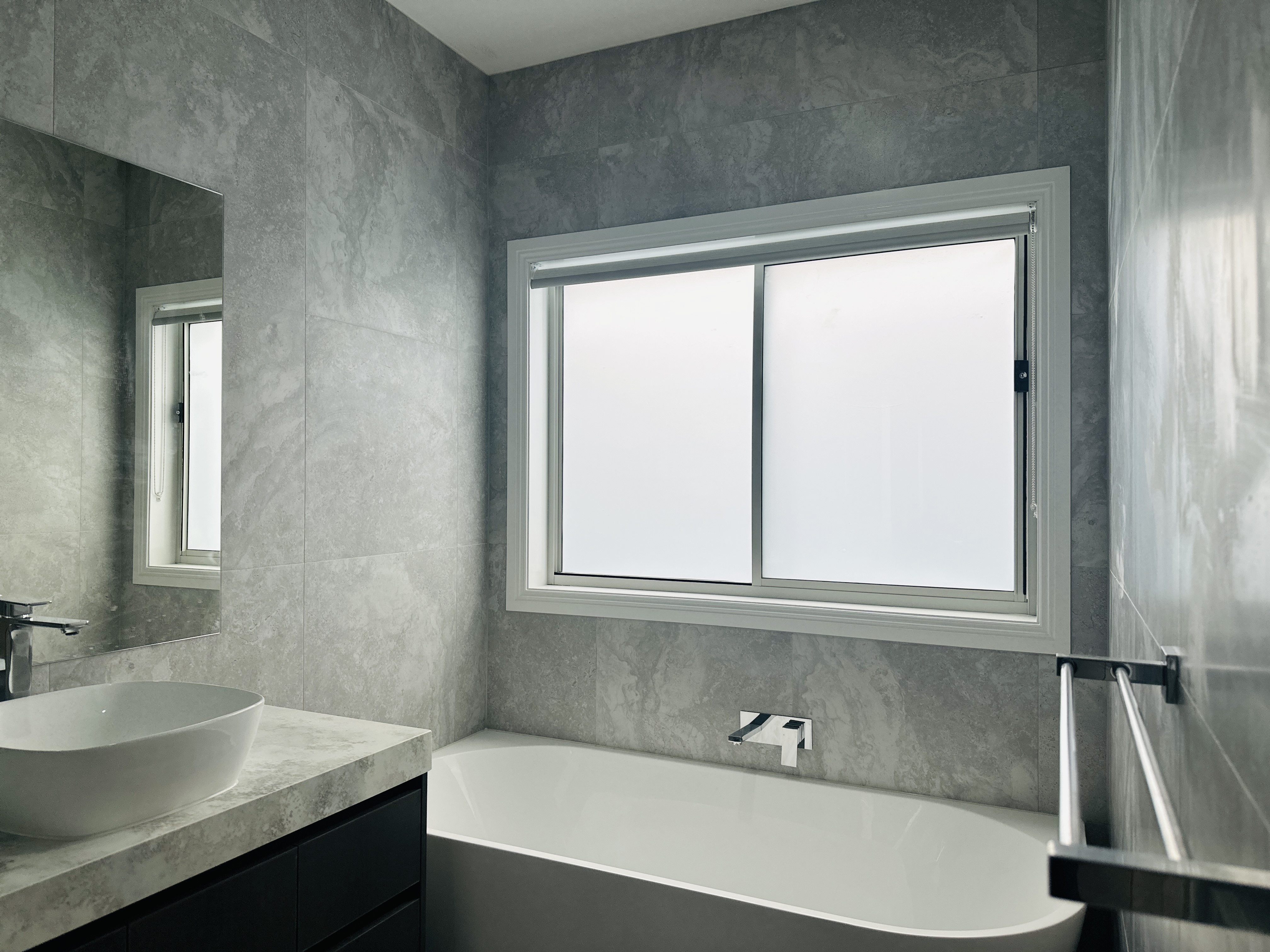 KITCHEN: Modern 900mm appliances, tiled splashback, and 100mm stone benchtop for a stylish and functional cooking experience.