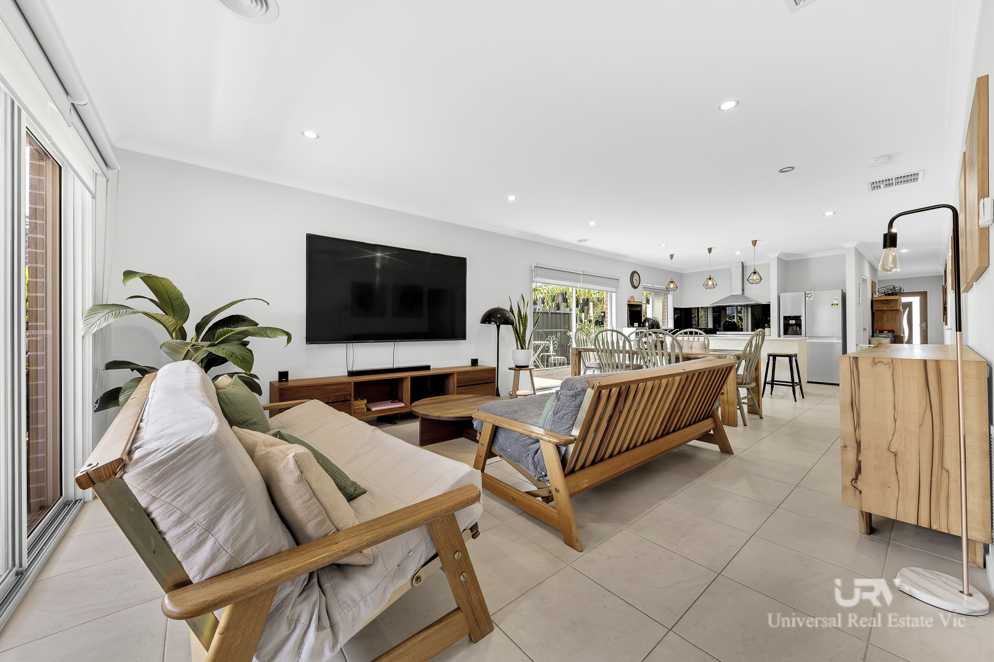 Light-filled open-plan living and dining area