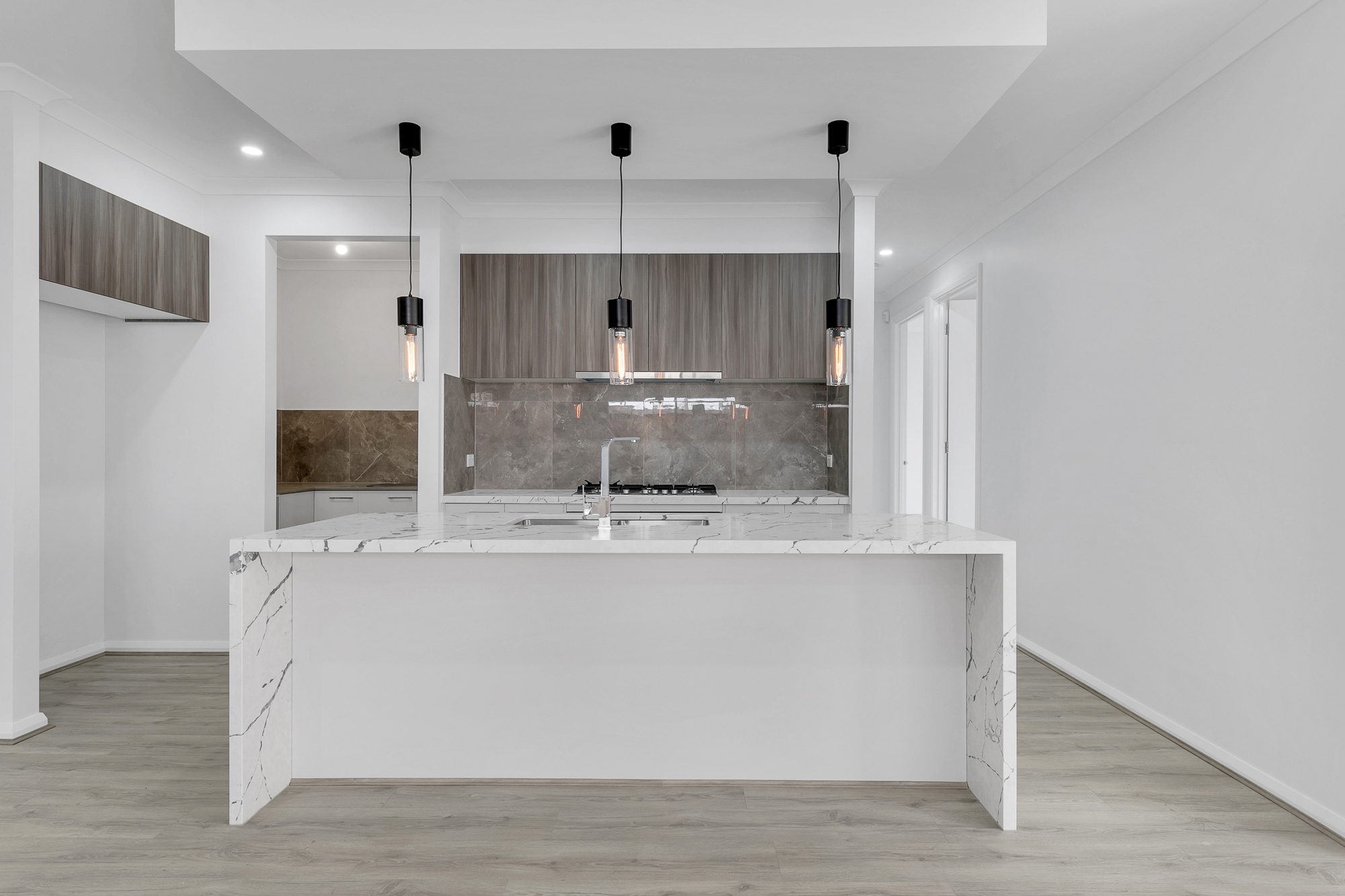 At the heart of the home lies a sleek designer kitchen boasting stone benchtops, premium appliances, and a spacious butler's pantry - perfect for those who love to cook and entertain. Multiple living zones provide flexibility for family relaxation, formal gatherings, or a dedicated home theatre.