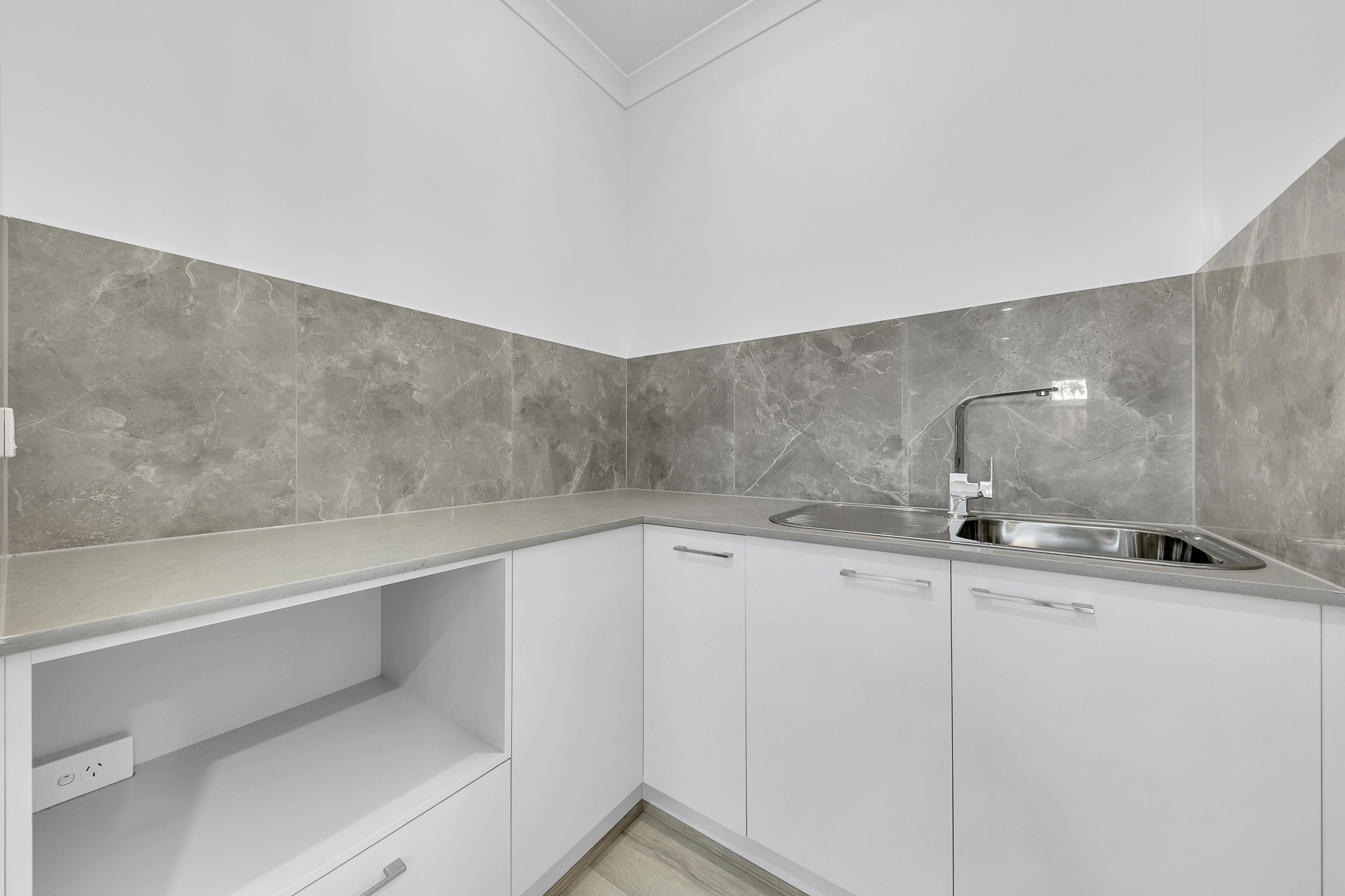 Designer kitchen with stone benchtops & butler's pantry