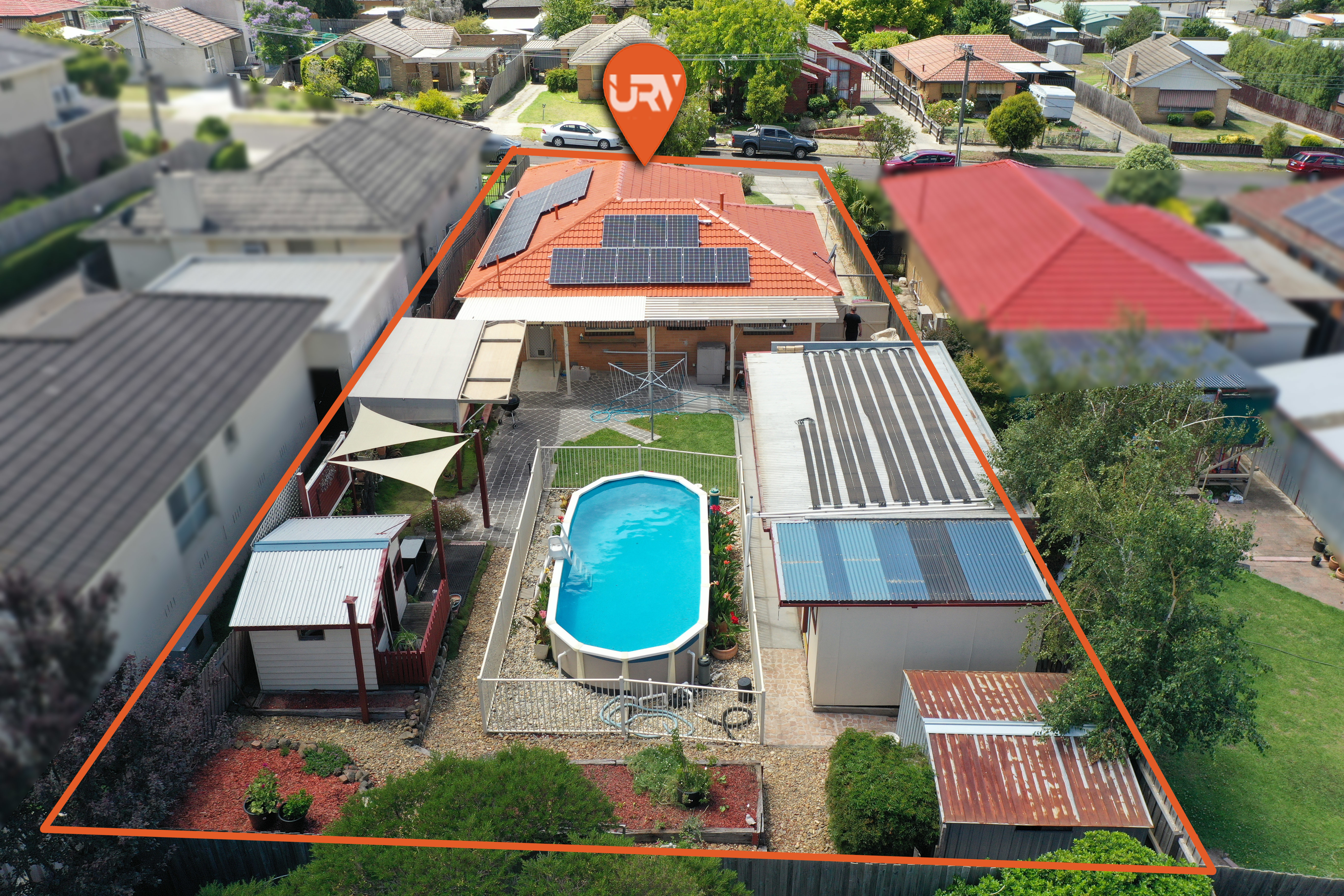 - ADDITIONAL INCLUSIONS: Wide Entry with solid Doors, LED Downlights, Water Tank (3000L), Storage Garden Shed, Solar System (6.4 KW), Hollands Blinds (in Pergola), Alarm System, Security Cameras, Sensor Security Lights.