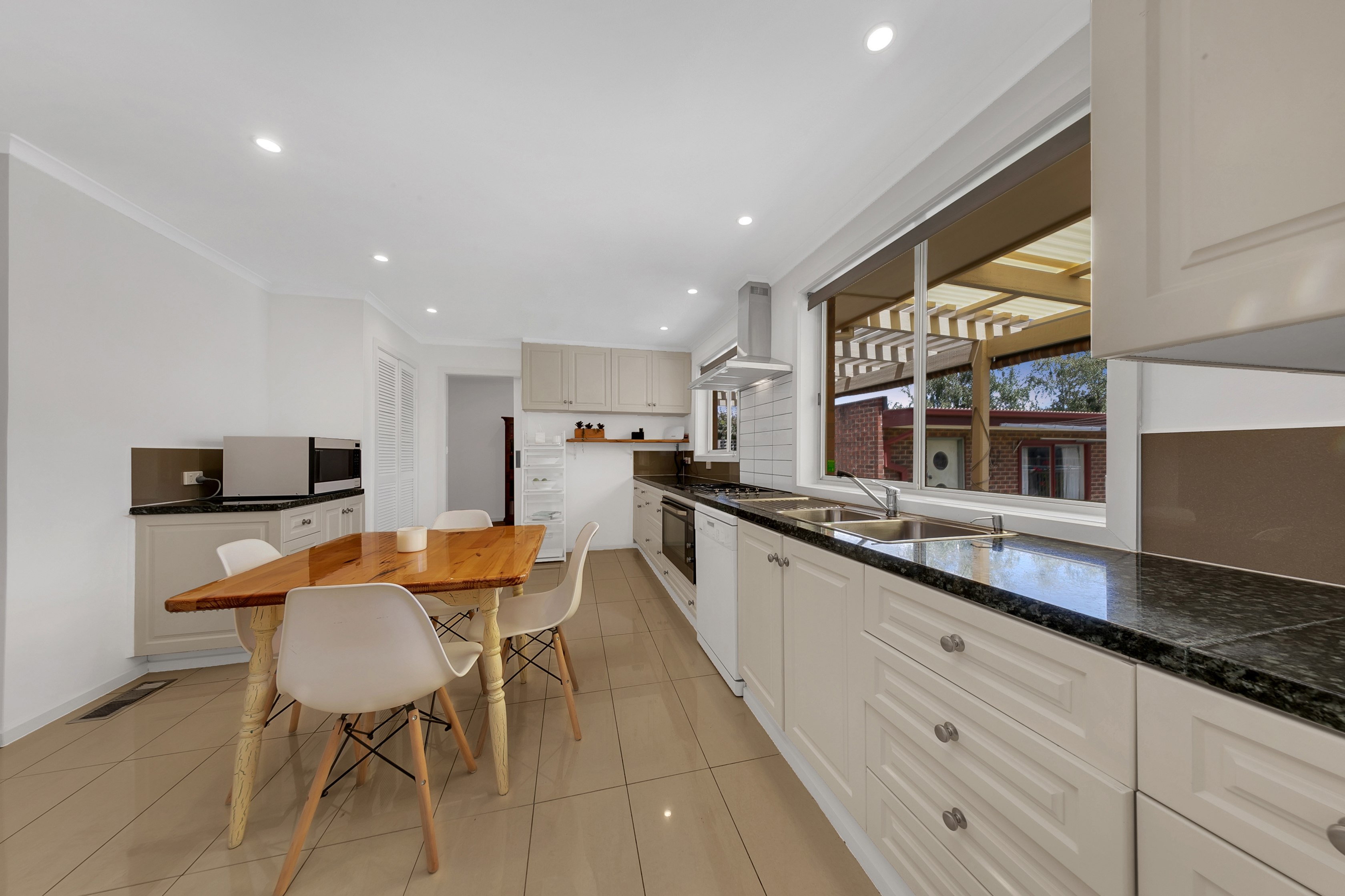 - KITCHEN: Granite Benchtop with 900mm Smeg Gas cooktop, 900mm AEG Electric Oven, Miele Dishwasher, Ample Cupboard Space, Pot Drawers, Capacious Pantry Cupboards.