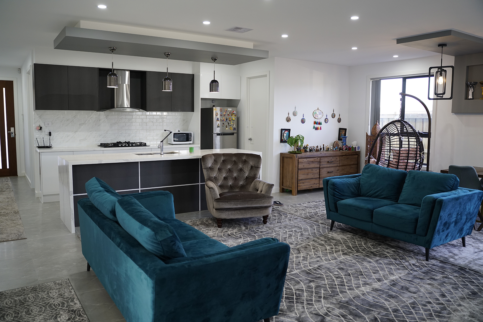 - KITCHEN: 900 mm gas cooktop, 900mm built-in-oven and rangehood. 40mm magnificent Stone Benchtop with Waterfalls feature under-mount sink and Bulkhead with Pendant Lights.