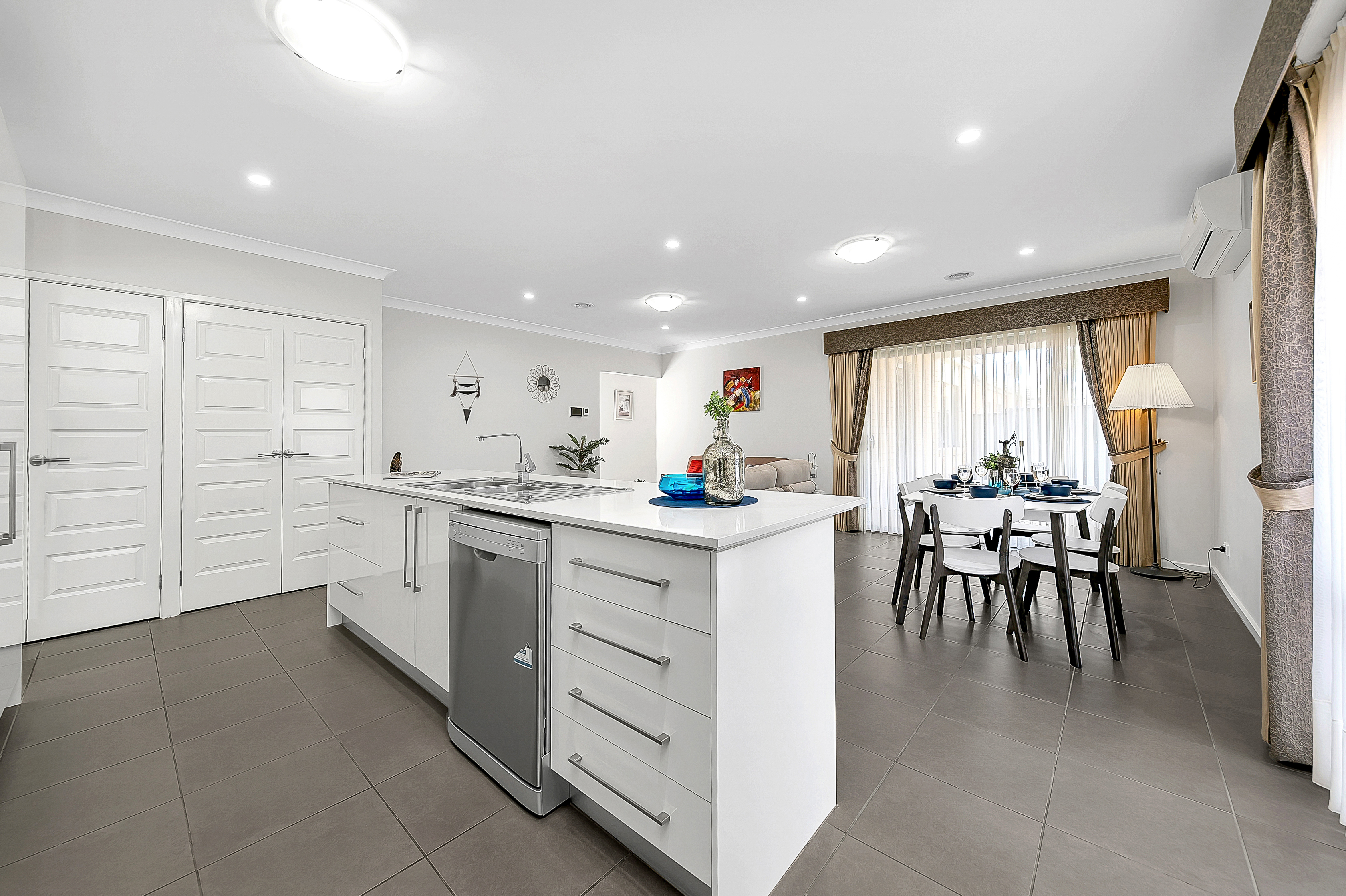 - KITCHEN: Spacious Open Plan Living/ Dining Kitchen with 900 mm Stainless Steel Appliances, Stone benchtops, Electric oven, Dishwasher, Double fridge space, Tiled splashback and Quality build cupboards.