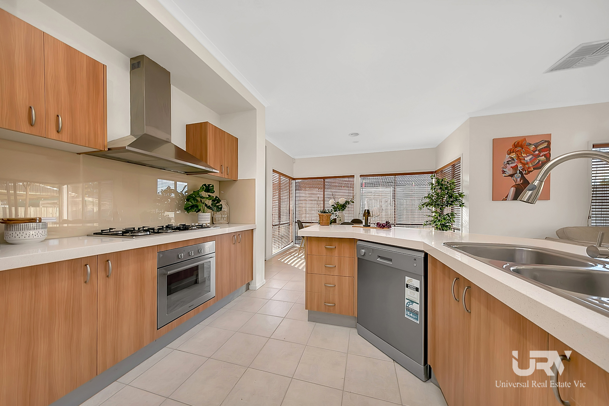 - Large kitchen with 60mm stone benchtop and pendant lighting, quality S/S appliances,