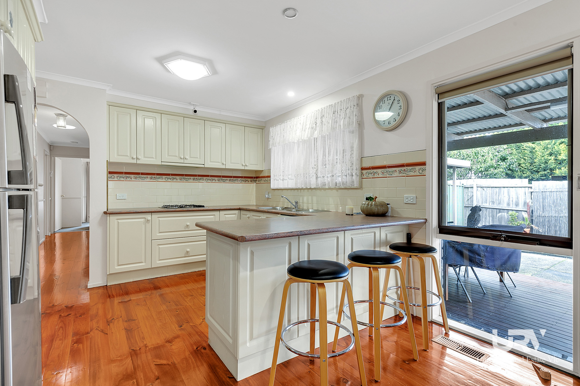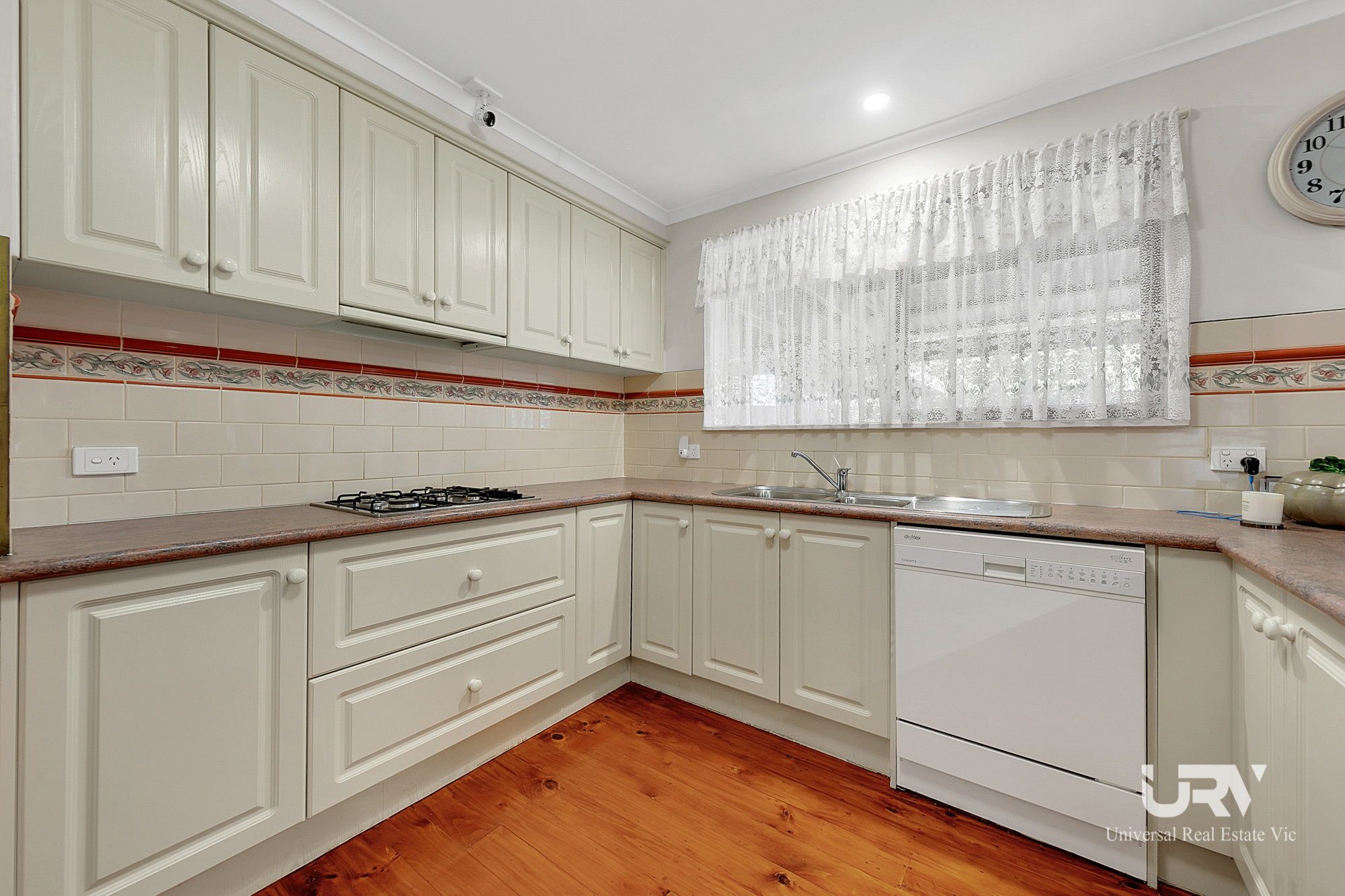 - KITCHEN: Well maintained and spacious kitchen with laminated benchtop, gas cooktop, wall-mounted oven, ample cupboards, fridge space, overhead cupboards, and dishwasher.