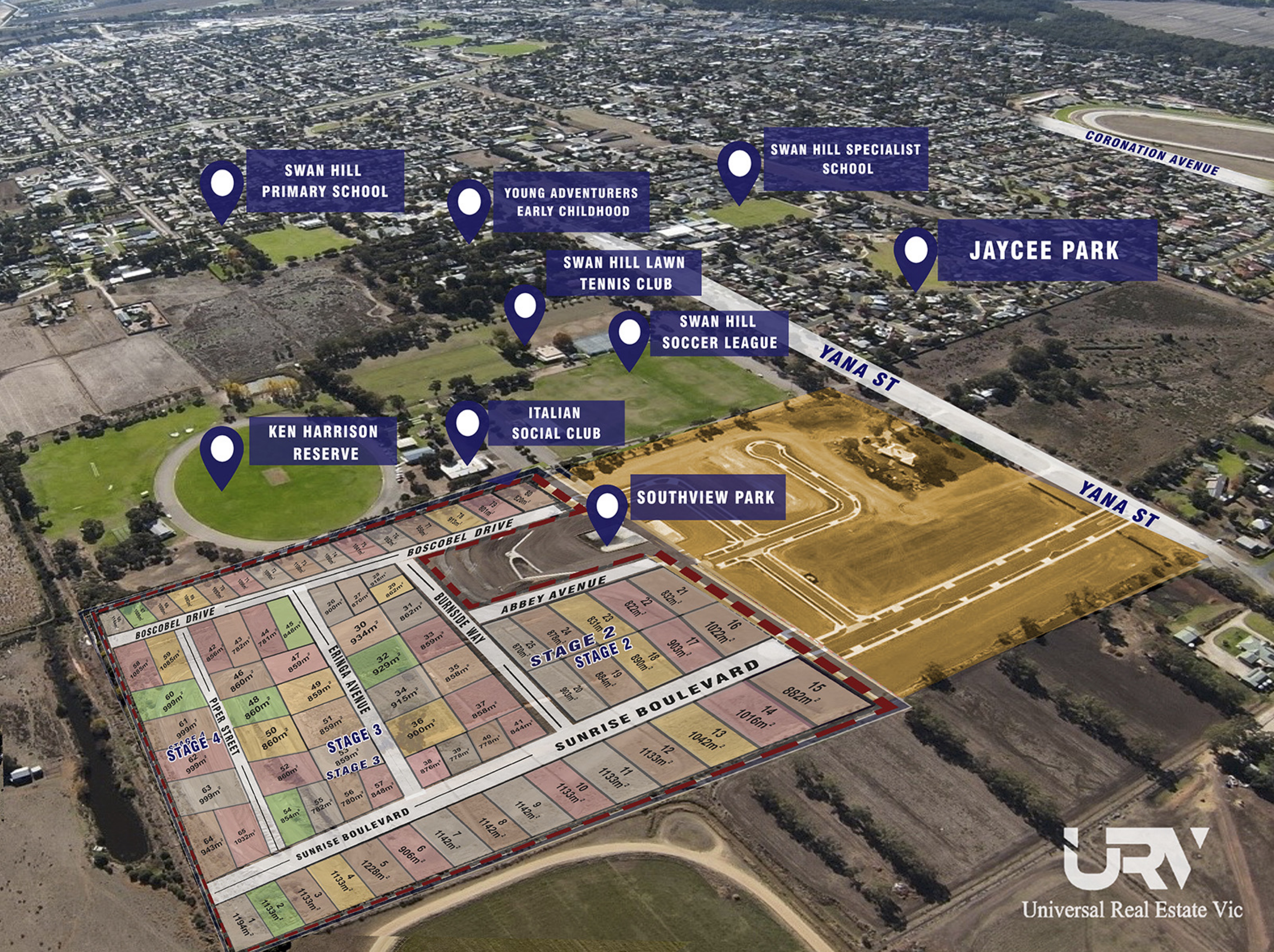 Universal Real Estate Vic NORTH has proudly presented Residential Development site in the heart of Swan Hill. Southview Estate would be considered as Toorak of Swan Hill as the hard-work has already been done by the neighbour who has completed the stage 1 development and services have been brought on the doorsteps. The five-year average increase in median property values for Swan Hill, Vic 3585 has given property investors a potential capital gain of 58.2%. Swan Hill has a population of Approximately 12,000, yet caters for a population of 25,000 - 30,000.