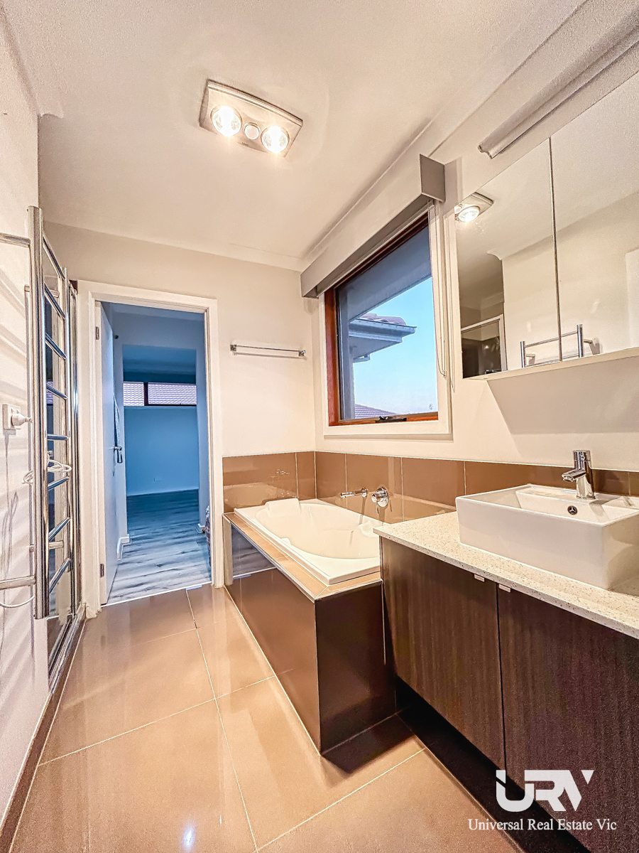 Bathrooms: The central bathroom on ground floor showcases a stone benchtop vanity and a tiled bathtub with separate shower space, and upstairs central bathroom comes with tiled bathtub, stone benchtop vanity with shower niche combining elegance with practicality.