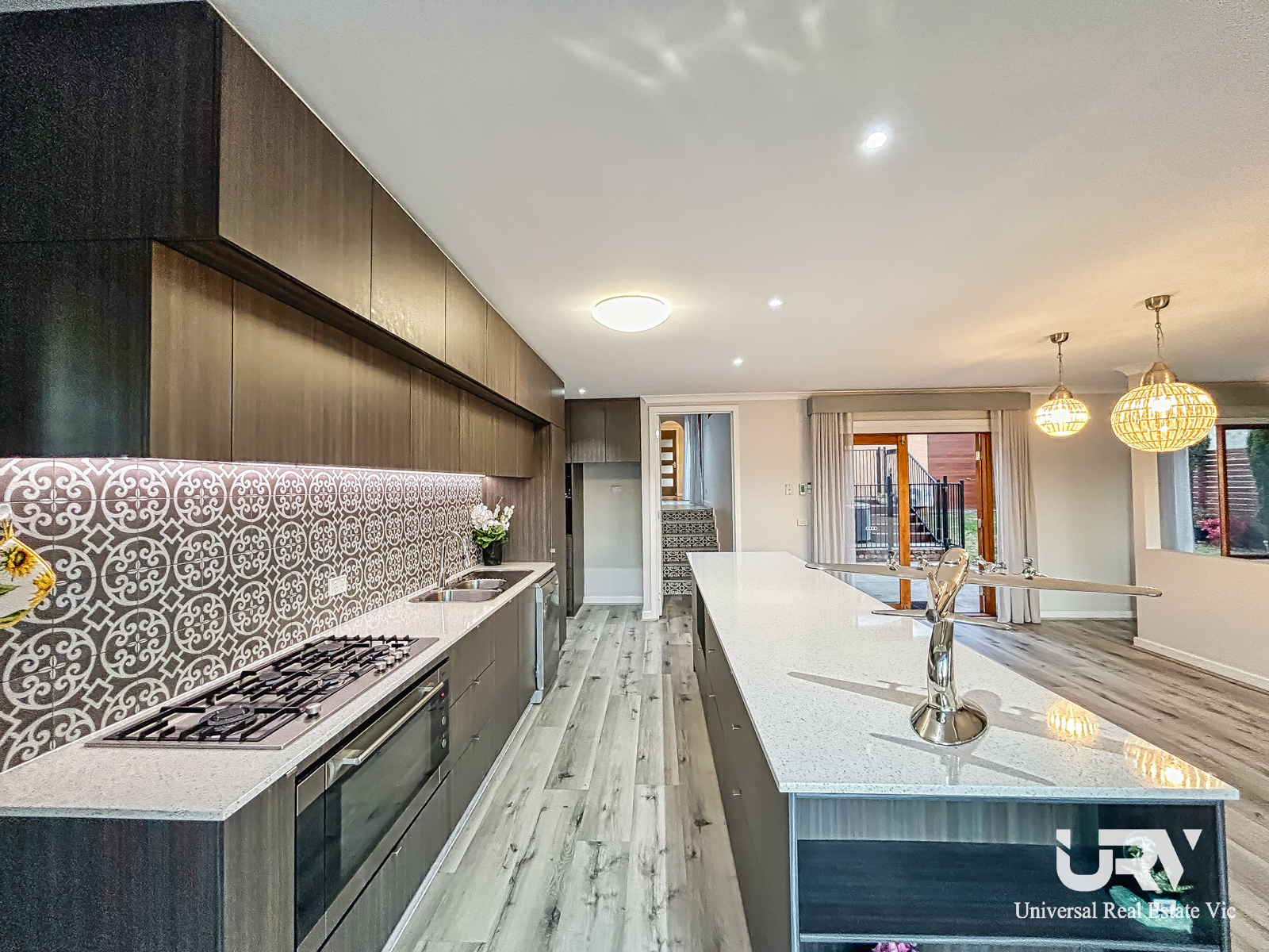 Kitchen: The contemporary kitchen features stone benchtops, 900mm appliances, a dishwasher, a walk-in pantry/study, and a sink, making it perfect for the home chef.