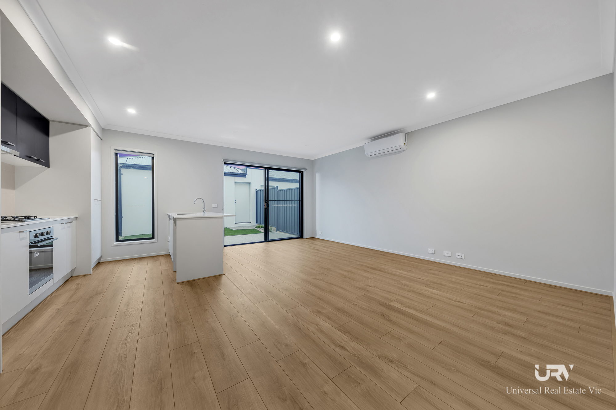 Open-plan kitchen, meals and living area