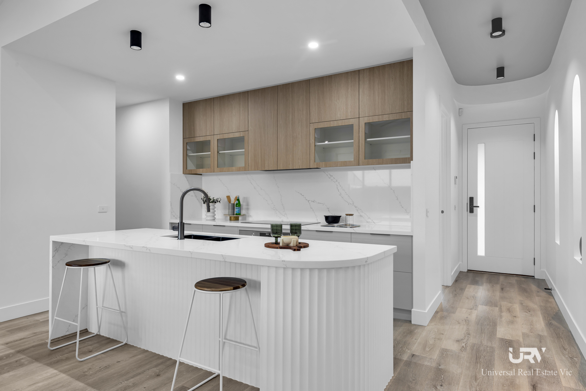 Step inside to discover a free-flowing layout that combines contemporary elegance with everyday practicality. The light-filled open-plan living and dining area is perfectly complemented by a sleek, modern kitchen featuring a stunning stone splashback, premium Bosch appliances including an electric oven, quality cabinetry, a functional pantry, and an island breakfast bar - making it the heart of the home for cooking and entertaining.