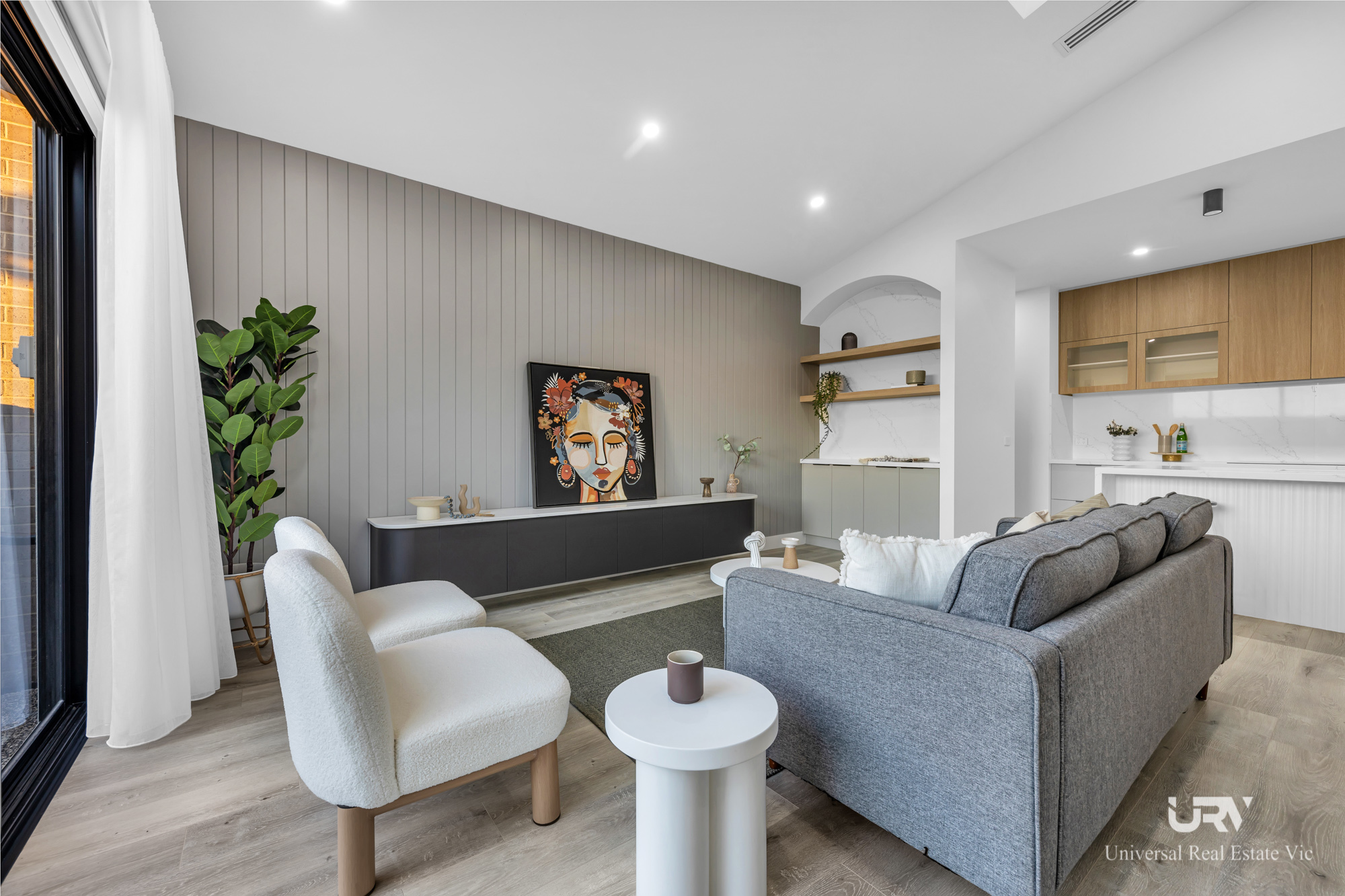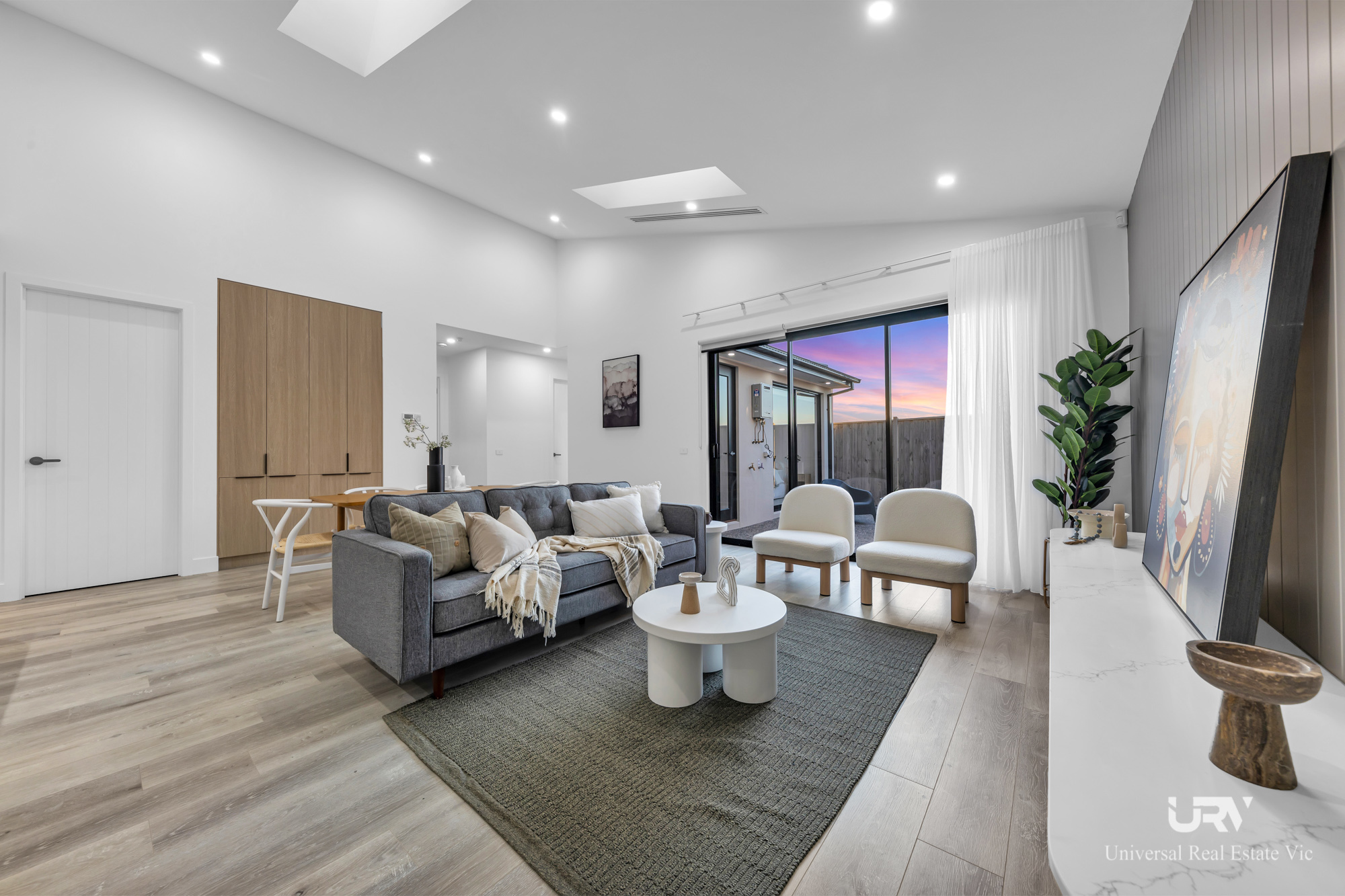 Quality finishes and modern comforts flow through every corner of the home, from high ceilings and stylish flooring to a zoned refrigerated ducted heating and cooling system that ensures year-round comfort. The home also features a low-maintenance backyard, perfect for entertaining or simply relaxing outdoors.