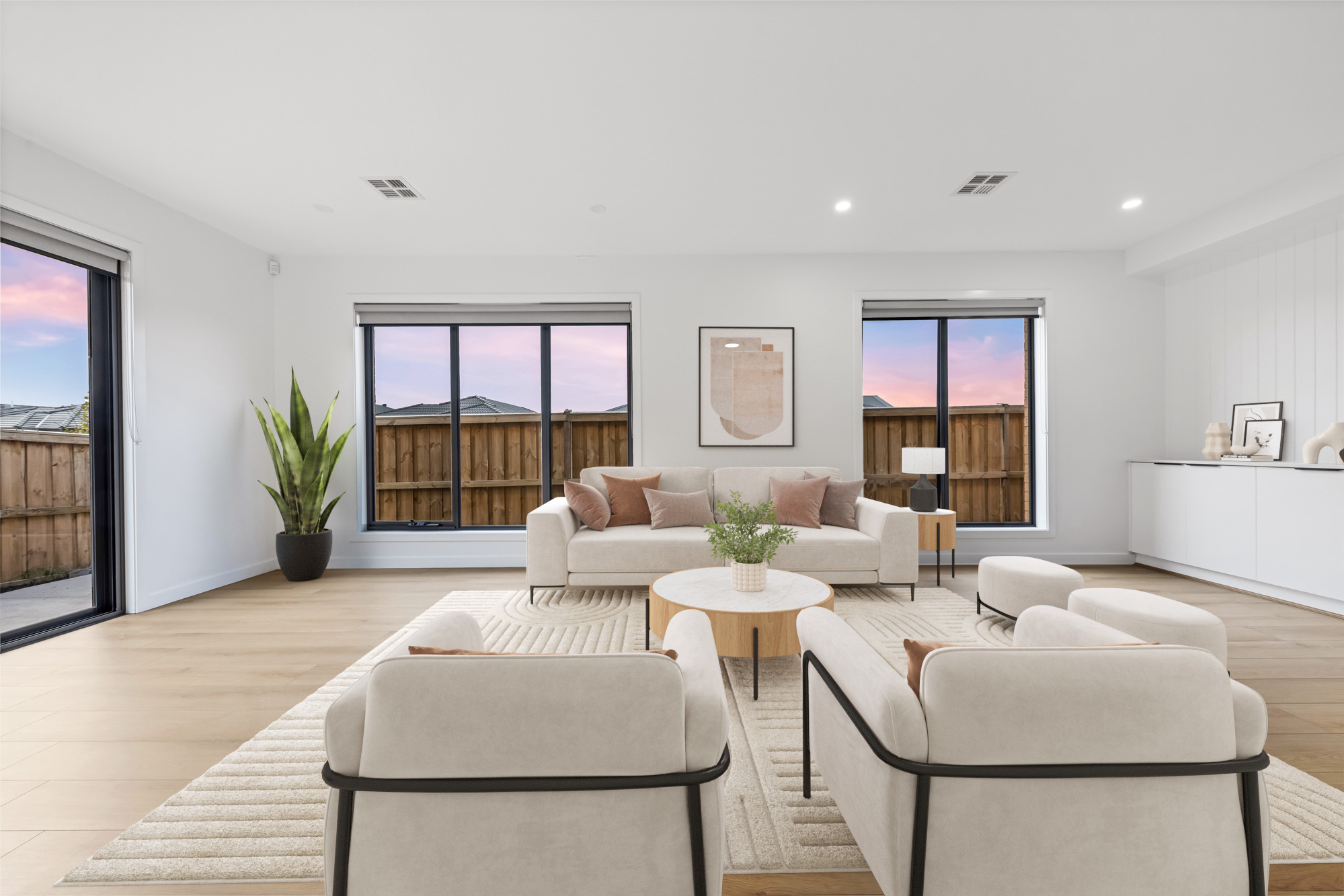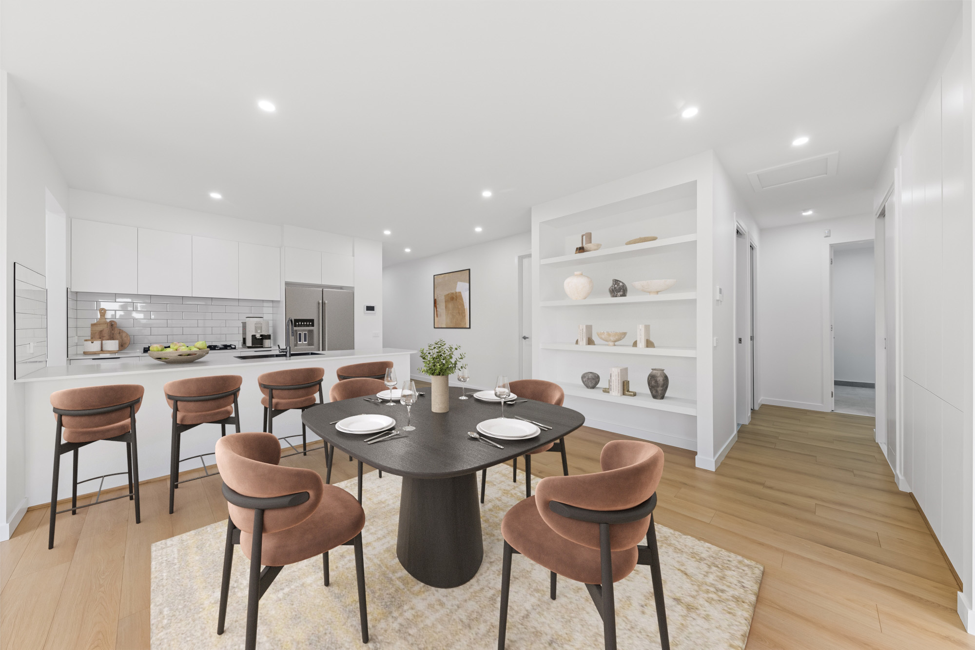 From the moment you walk in, you're welcomed by a light-filled open-plan living and dining zone that flows effortlessly into the contemporary kitchen. Designed to impress, the kitchen is complete with premium cabinetry, tiled splashback, walk-in pantry, and an inviting island breakfast bar - making it the heart of the home.