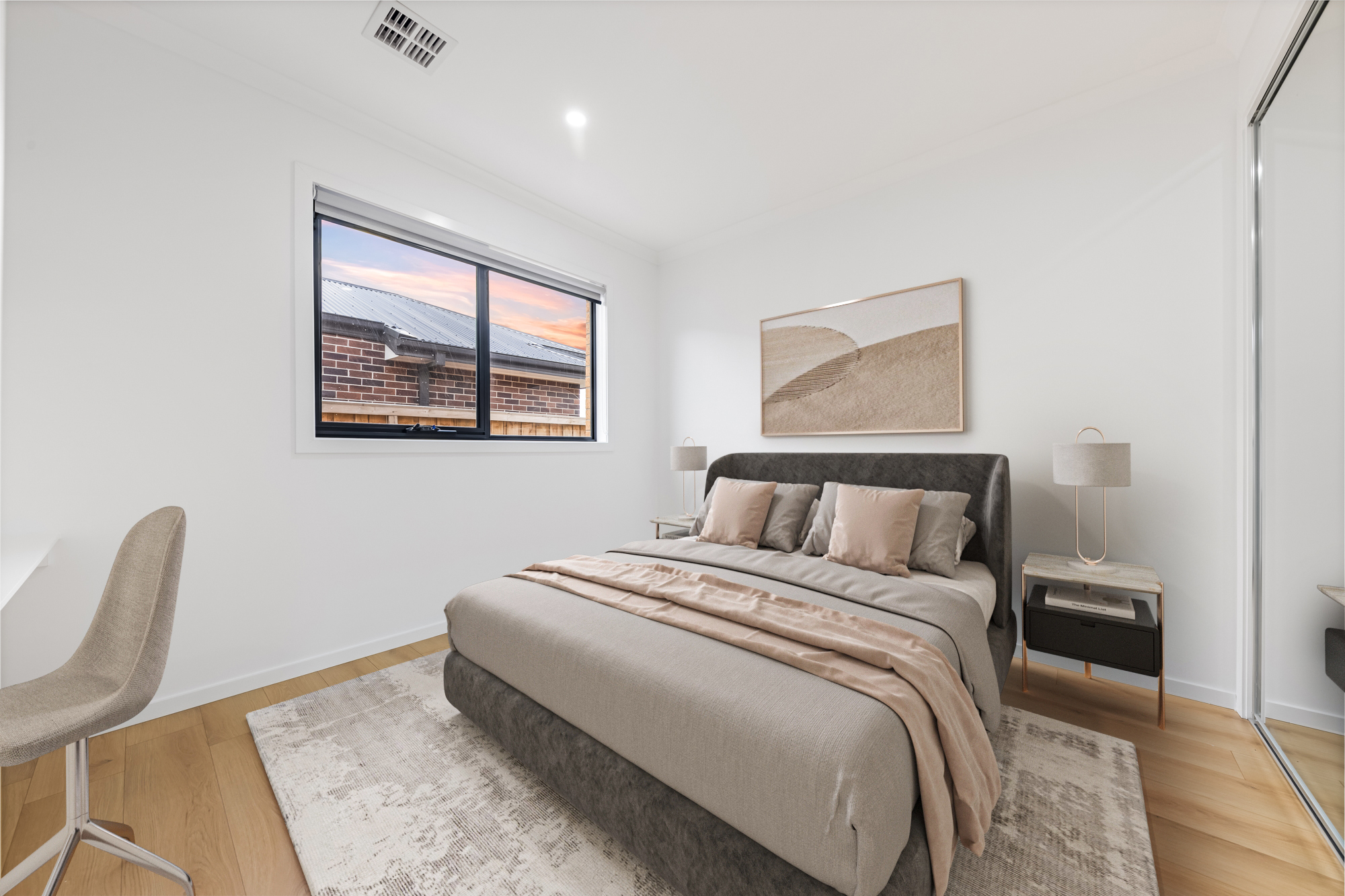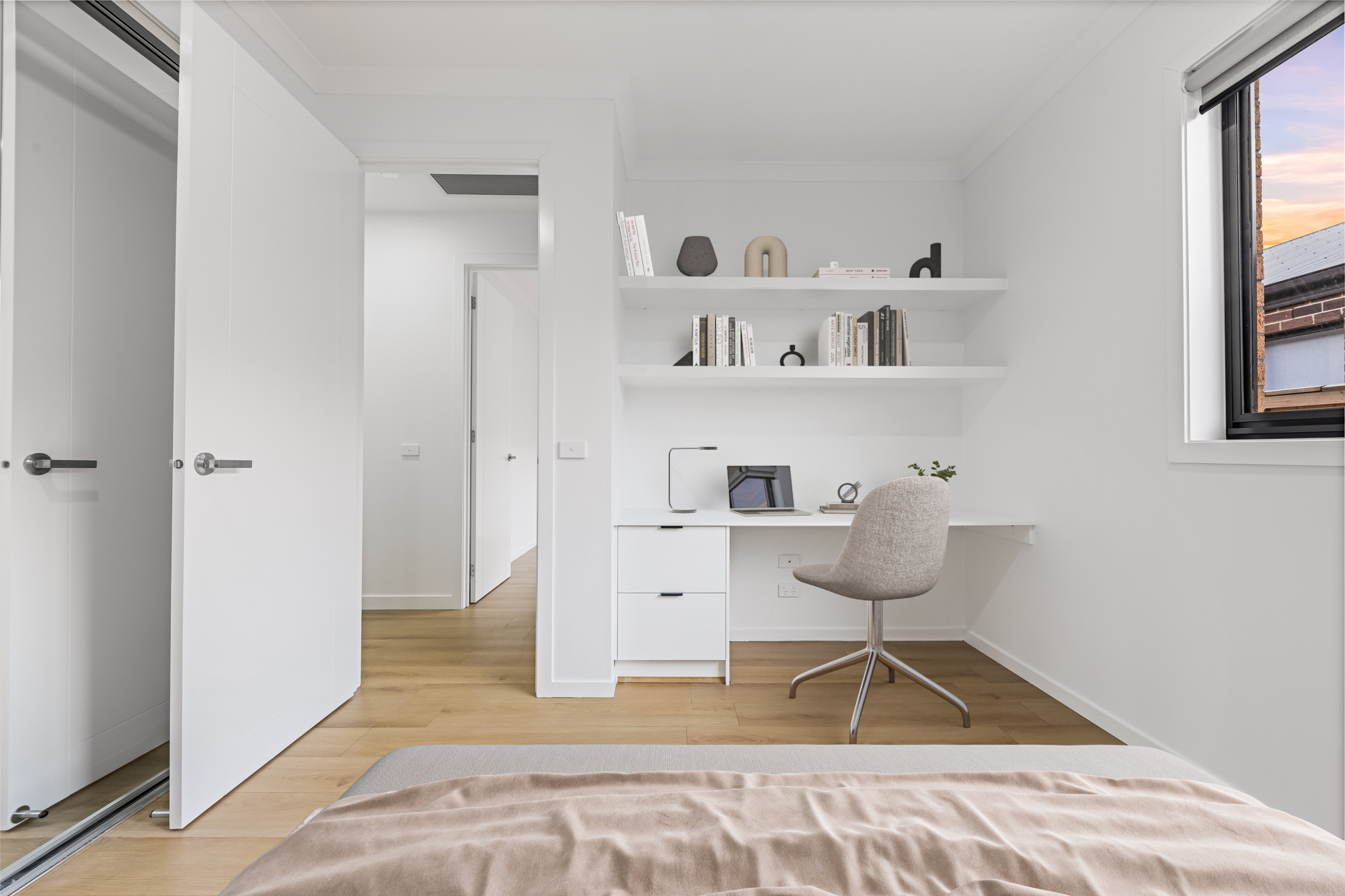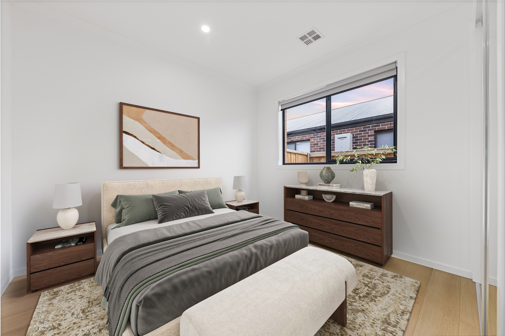 The master bedroom is your private retreat, offering a walk-in robe and a sleek ensuite with floor-to-ceiling matte finish tiles. Two additional bedrooms are well-proportioned and come with built-in robes, including extra storage in one - ideal for growing families or working professionals.