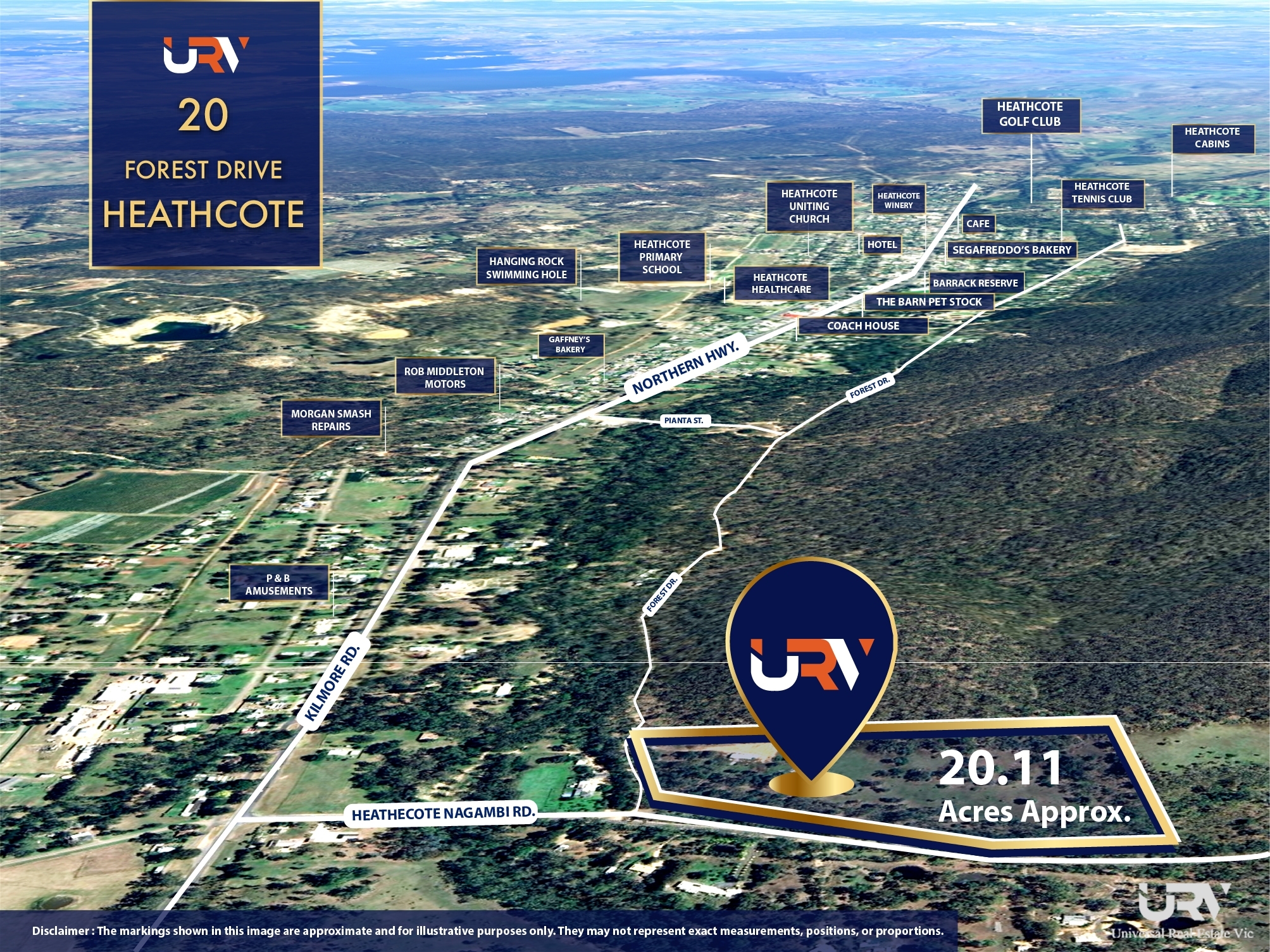 Universal Real Estate VIC North proudly presents an exceptional landholding opportunity at 20 Forest Drive, Heathcote VIC 3523. Positioned within the sought-after Low Density Residential Zone (LDRZ1), this expansive 20.11 acres (approx.) allotment offers the perfect balance of space, serenity, and potential. Nestled in the peaceful surrounds of Heathcote - renowned for its picturesque landscapes, boutique wineries, and relaxed country lifestyle - this property provides an incredible opportunity to build your dream home or multi lot subdivision development potential (STCA) with 2 street frontage.
